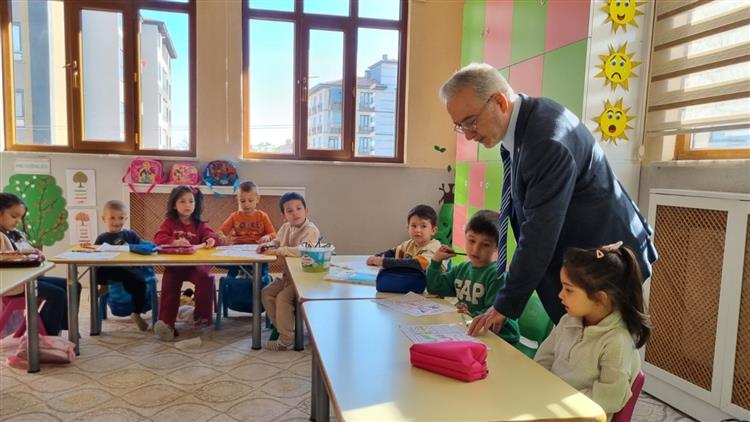 Ziyaret kapsamında 4-6 yaş öğrencileri ile ihtiyaç odaklı sınıfları gezen Müftü Taş, Kur’an kursu yöneticisi ve öğreticilerinden eğitim-öğretim faaliyetleri hakkında bilgi aldı.