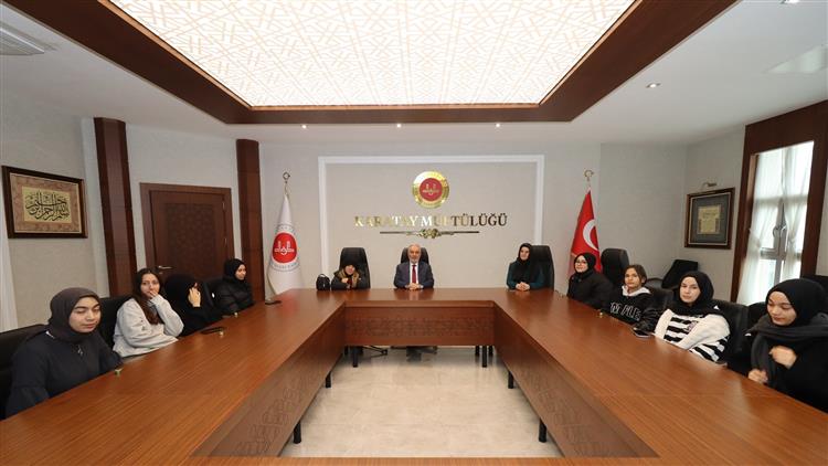 Bozkırlılar Vakfı Kız Anadolu İmam Hatip Lisesi Müdür Yardımcısı Sebahat Kılınç, meslek dersleri öğretmeni Hafize Çelik ve öğrenciler, Karatay İlçe Müftülüğünü ziyaret etti.