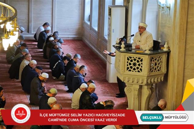İlçe Müftümüz Selim Yazıcı, Konya’nın en büyük camilerinden biri olan Hacıveyiszade Camiinde cuma namazı öncesinde cemaate hitap etti.