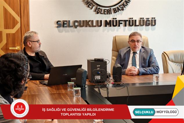 İş Sağlığı ve Güvenliği bilgilendirme toplantısı İlçe Müftümüz Selim Yazıcı'nın başkanlığında yapıldı. İş sağlığı ve güvenliği anlamında ilçemizde yapılması gerekenler konusunda kararların alındığı toplantıya; Konya Teknik Üniversitesi Öğr.Gör.Halil Çelik, Müftülüğümüz Şube Müdürleri İsmail Bulun, Ahmet Akkan ve Murat Demirhan, İş Sağlığı ve Güvenliği Uzm.Şerife Görgülü ile daire personeli katıldılar.