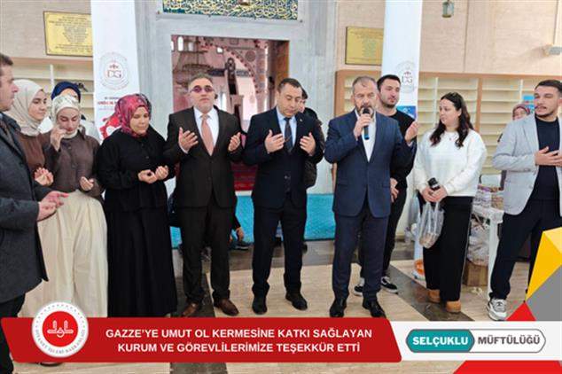 Selçuklu Müftülüğümüze bağlı Kur'an Kurslarımız tarafından organize edilen Gazze'ye Umut Ol kermesimize katkı sağlayan Selçuk Üniversitesi Rektörlüğü, Konya İl Müftülüğü, Fen Fakültesi Dekanlığı, Kurs Yönetici ve öğreticileri ile Kampüs Diyanet Gençlik koordinatörlerimize teşekkür ederiz.