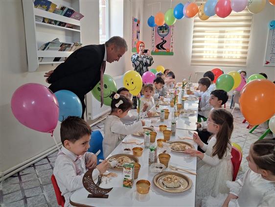 Çocukların oruç bilinci kazanması amacıyla düzenlenen programda, minik öğrenciler tarafından hazırlanan maniler ilgiyle dinlendi. Ramazan ayının manevi atmosferini yansıtan etkinlikte çocukların heyecanı ve sevinci dikkat çekti.