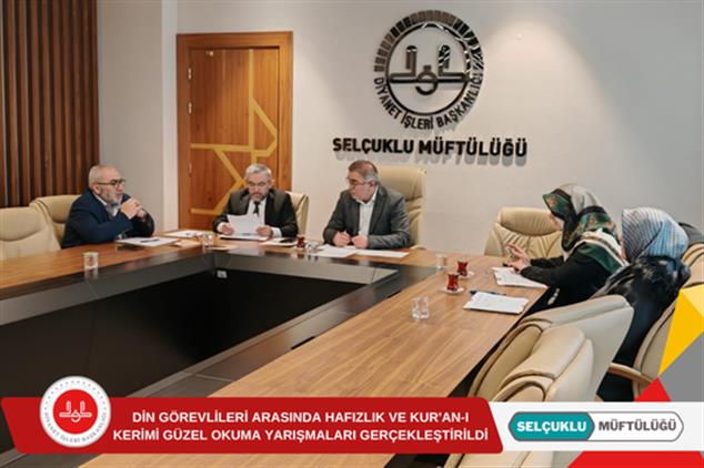 2026 yılı Camiler ve Din Görevlileri Haftası kutlama etkinlikleri çerçevesinde; Başkanlığımız personelinin mesleki ve kişisel yönden kendilerini geliştirmeleri, planlı çalışma alışkanlığı kazanmaları, hizmet aşkı ve heyecanını kaybetmeden görevlerini cesaretle icra etmeleri, hizmet süresince kendilerine güven duymaları, hafızlıklarını pekiştirmeleri ve Kur'an-ı Kerim'i güzel okuma ve anlama becerilerini geliştirmeleri amacıyla, "Hafızlık ve Kur'an-ı Kerim'i Güzel Okuma" yarışmaları düzenlendi.
