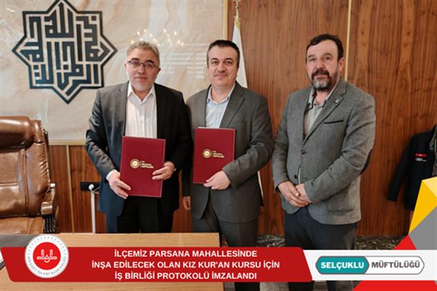 Selçuklu İlçe Müftülüğü ile İkbal İlim, Kültür ve Bilimsel Araştırmalar Derneği arasında, Parsana Mahallesi’nde inşa edilecek olan Kız Kur’an Kursu’nun yapımına dair resmi iş birliği protokolü imzalandı.