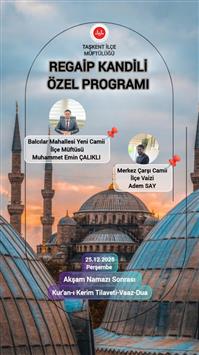 REGAİP KANDİLİ ÖZEL PROGRAMIMIZA DAVETLİSİNİZ