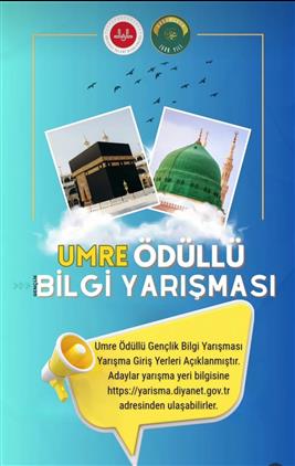 Umre Ödüllü Gençlik Bilgi Yarışması Yarışma Giriş Yerleri Açıklanmıştır. Adaylar yarışma yeri bilgisine https://yarışma.diyanet.gov.tr adresinden ulaşabilirler