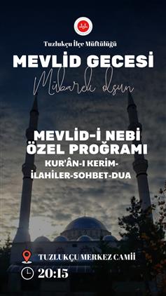 Mevlid-i Nebi Gecemiz Ülkemize, Milletimize, İlçemize ve tüm İslam alemine Mübarek Olsun. Tuzlukçu İlçe Müftüsü Mikail Zor